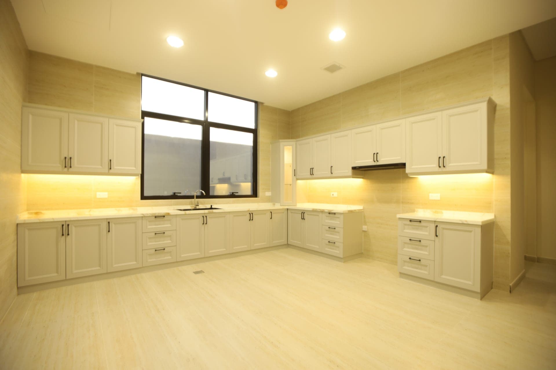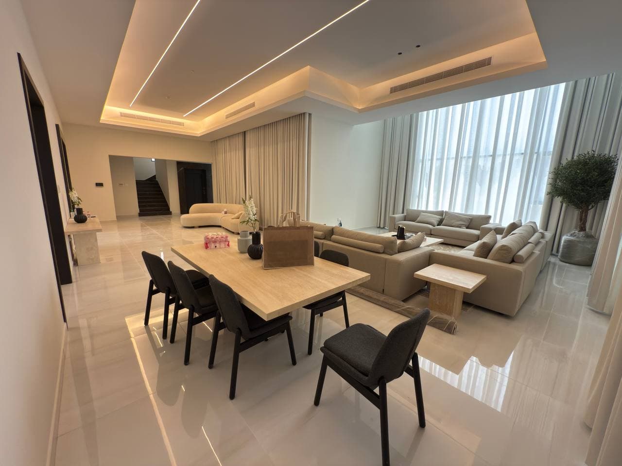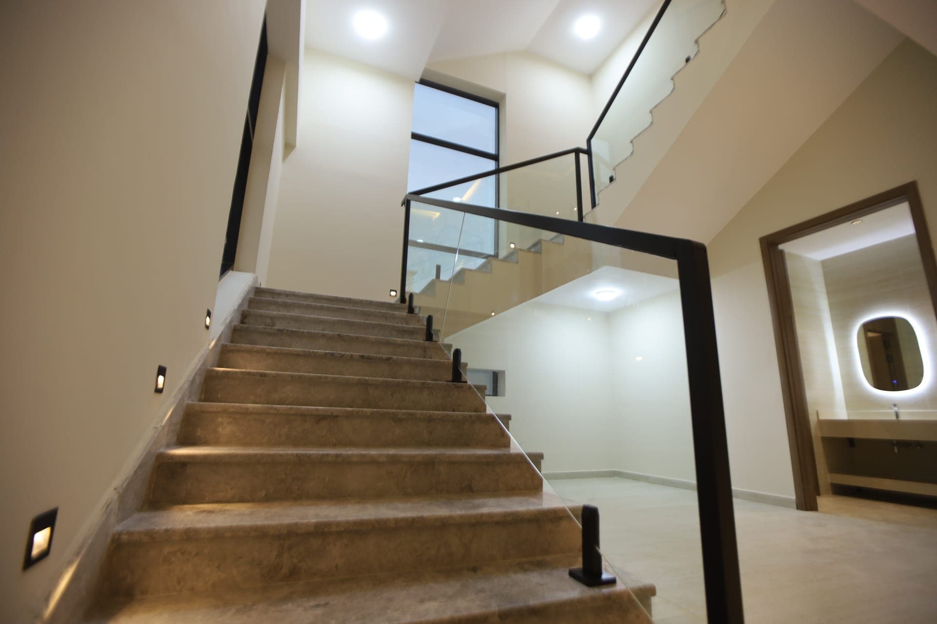 فيلا سكنية فاخرة مُسلَّمة بتشطيب كامل من الداخل والخارج. تجمع بين الواجهات الحجرية الأنيقة والنوافذ الزجاجية الكبيرة، مع تشطيبات داخلية فاخرة تشمل أرضيات رخامية لامعة، مطبخاً مجهزاً بالكامل، صالة معيشة واسعة بإضاءة مميزة، وحمامات بتصاميم عصرية.