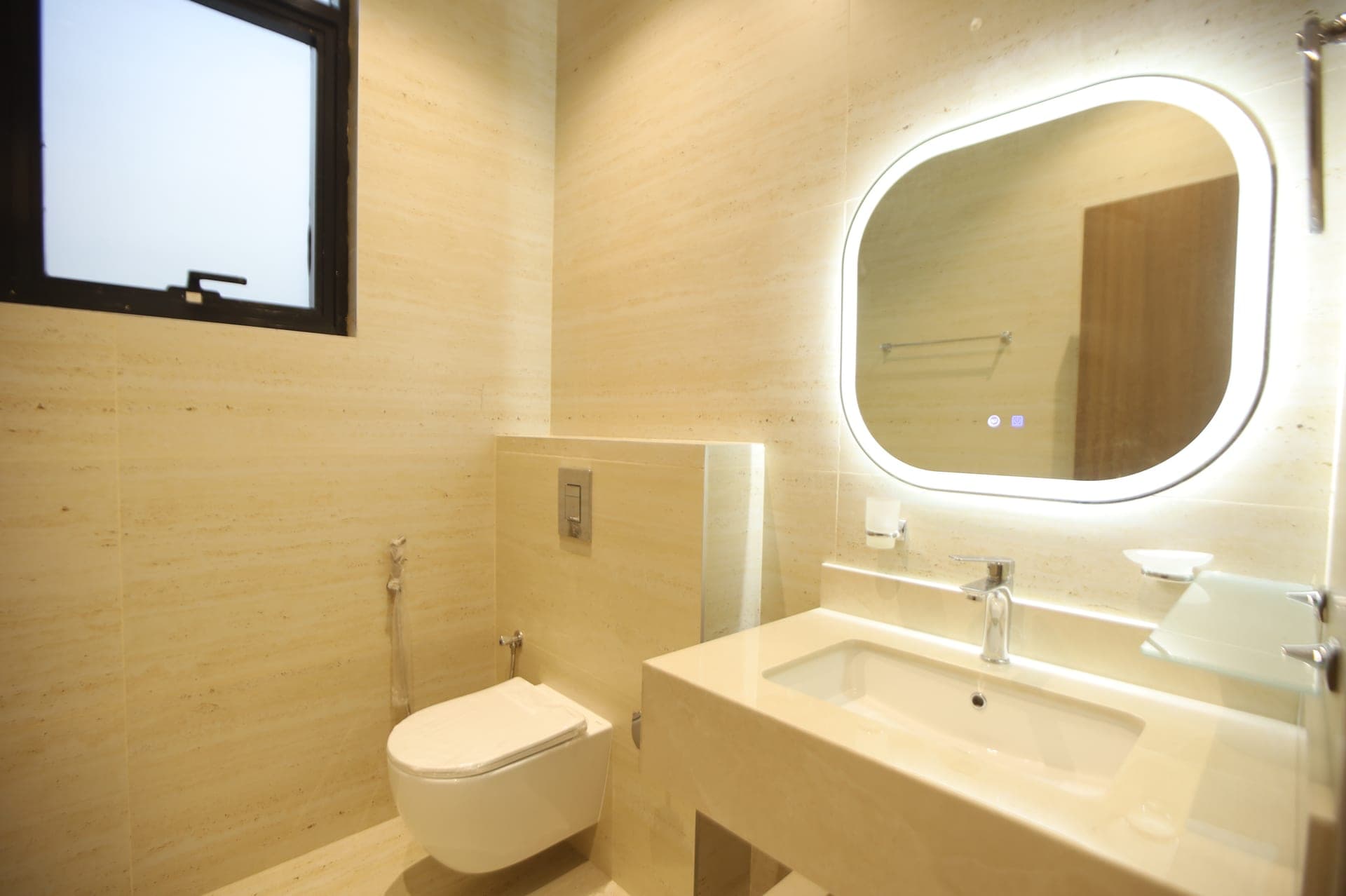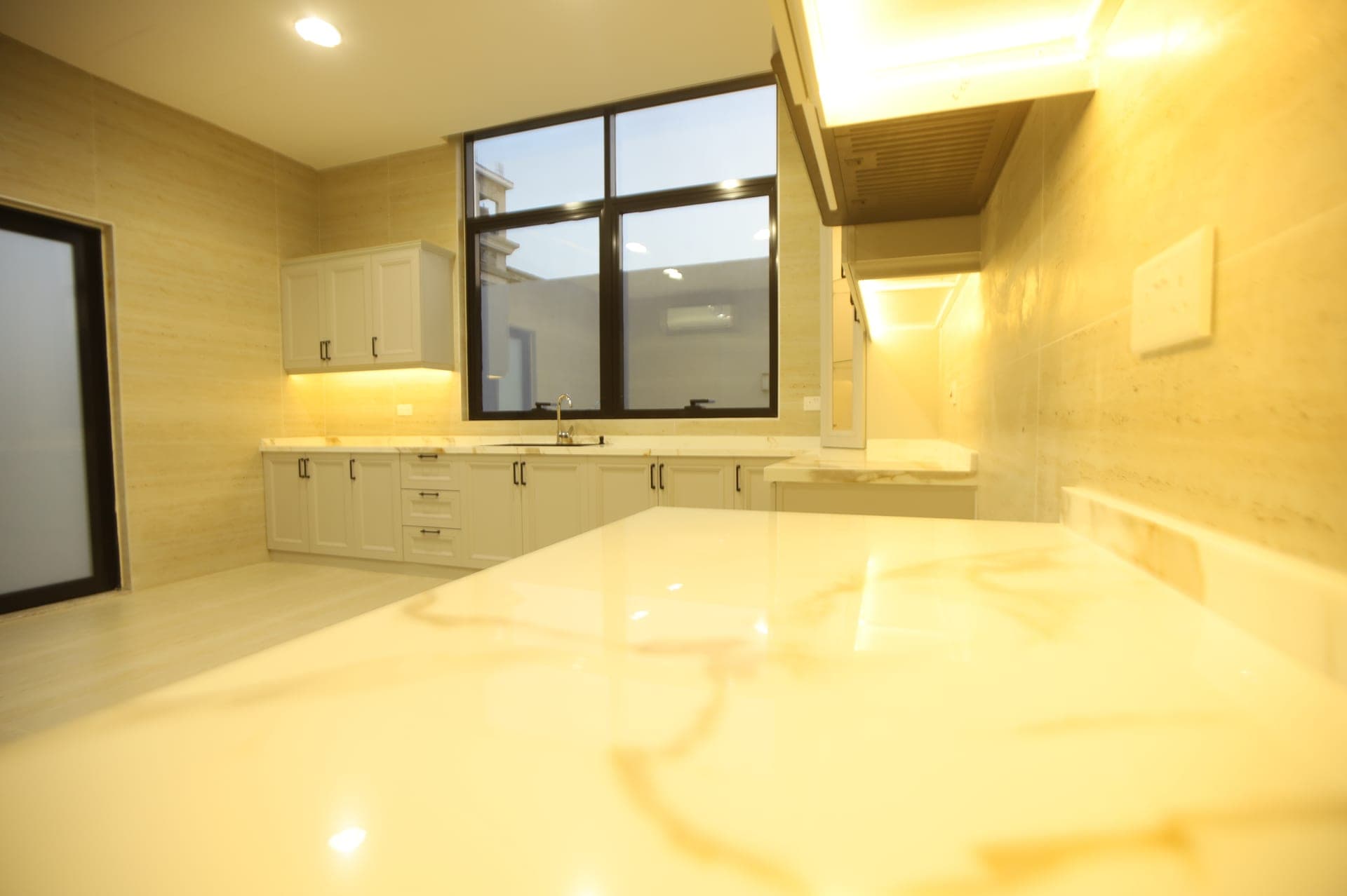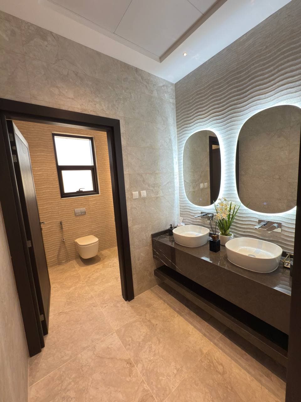 فيلا سكنية فاخرة مُسلَّمة بتشطيب كامل من الداخل والخارج. تجمع بين الواجهات الحجرية الأنيقة والنوافذ الزجاجية الكبيرة، مع تشطيبات داخلية فاخرة تشمل أرضيات رخامية لامعة، مطبخاً مجهزاً بالكامل، صالة معيشة واسعة بإضاءة مميزة، وحمامات بتصاميم عصرية.