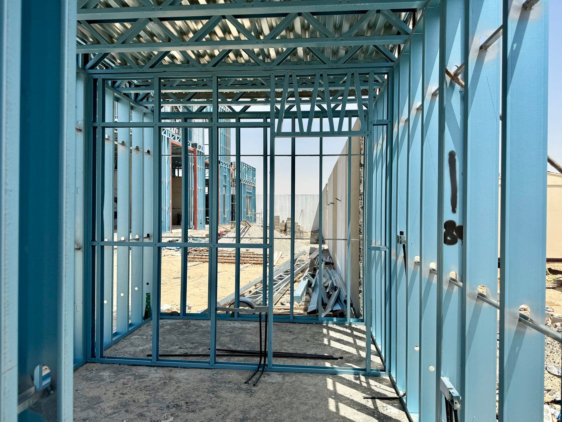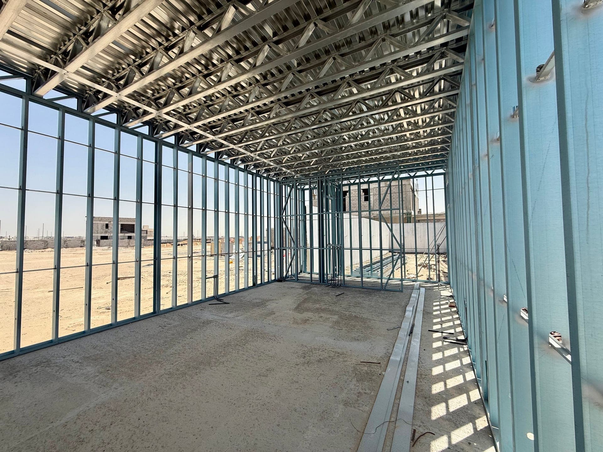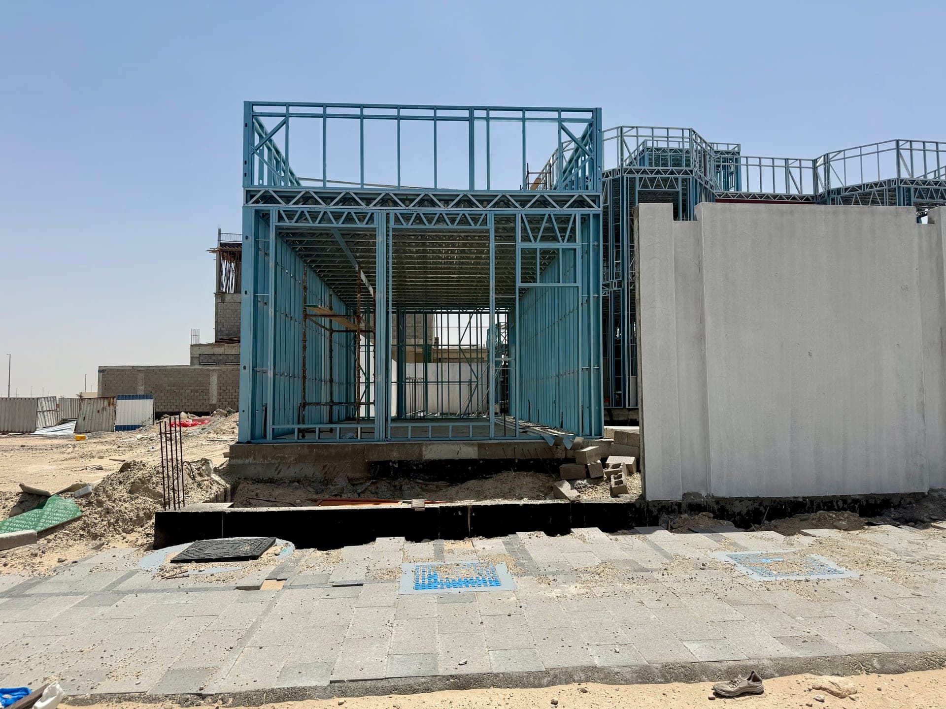فيلا سكنية مُنجَزة بنظام الهياكل الفولاذية خفيفة الوزن (LGS). يتسم التنفيذ بالدقة الهندسية العالية والنظافة في مراحل البناء كافة، مما يُقلل من الهدر ويُقصّر زمن التسليم دون المساس بمعايير الجودة والسلامة الإنشائية.