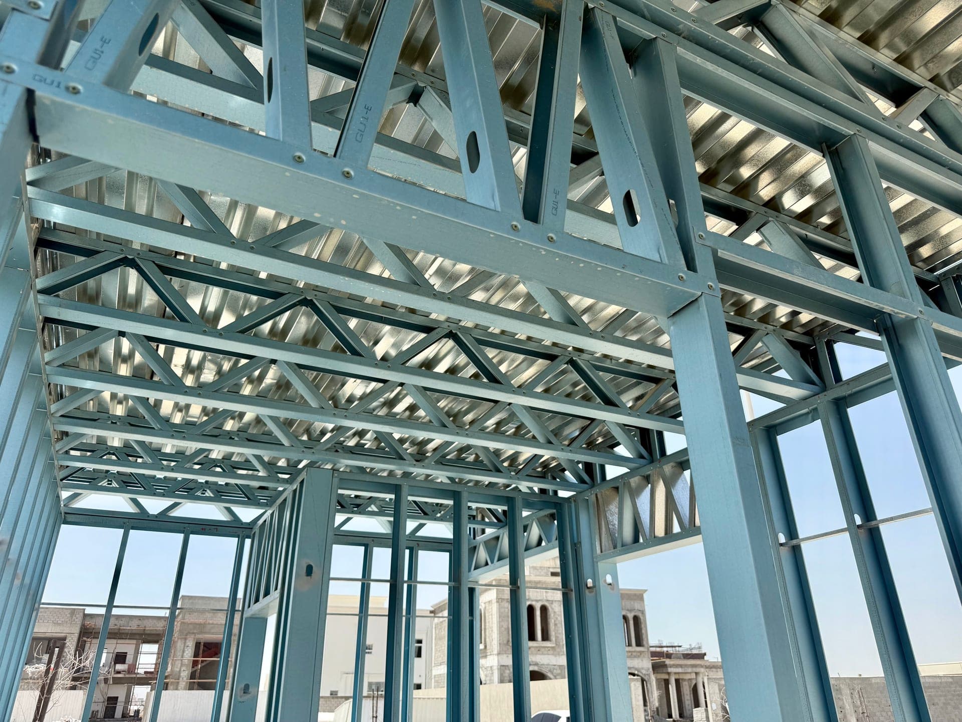 مشروع فيلا سكنية فاخرة متعددة الطوابق مُنفَّذ بالكامل بنظام SC Steel للهياكل الفولاذية الخفيفة. يتميز المشروع بسرعة التنفيذ وجودة التشطيب العالية، مع استخدام أحدث تقنيات البناء البارد التي تضمن متانة استثنائية ومقاومة عالية للعوامل البيئية.
